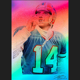 Each box contains 2 packs featuring 8 limited edition hand-made art cards. One pack contains 7 random limited edition cards in soft plastic sleeves, and the other pack contains 1 original embellished art card signed by the artist, Michael Biondo, in a sealed clear magnetic case. Also, each box is presented in a open ended sleeve enclosure with an original color pencil drawing (approximately 4" x 6") featuring current & legendary Buffalo football players.